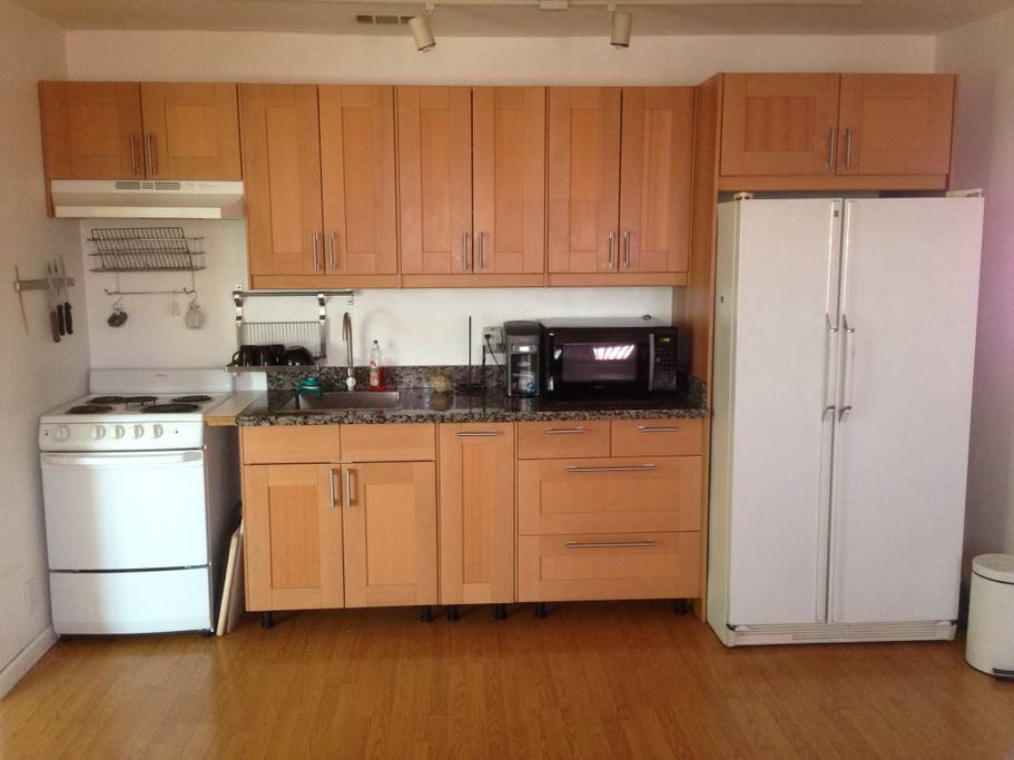 This is a very large one bed room size about 750 sq ft private studio !